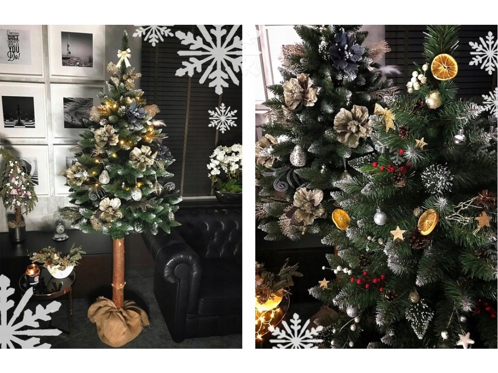 Vianočný strom sa vyznačuje predovšetkým jeho pôvodnou podobou. Skladá sa z vysokokvalitnej koruny a prírodného kmeňa zdobeného krásnym jutovým materiálom. Vianočný strom je navyše veľmi hustý a nevyžaduje veľa dekorácií. Na rozdiel od lacnejších vianočných stromčekov má rôzne koncové vetvičky, ktoré vytvárajú jedinečný efekt.