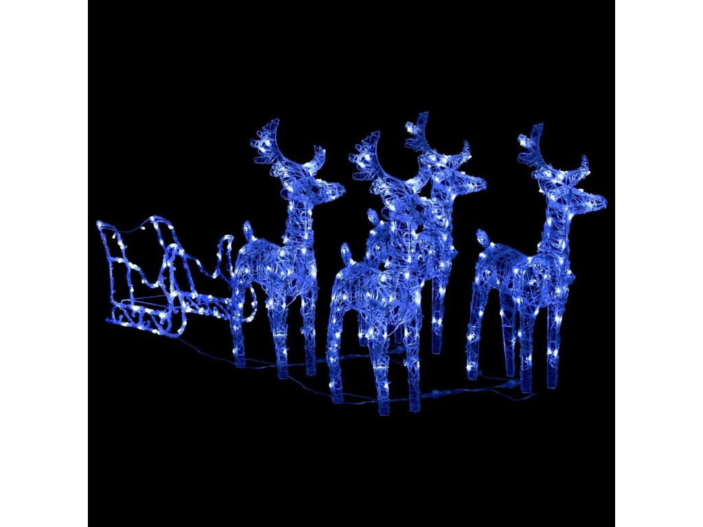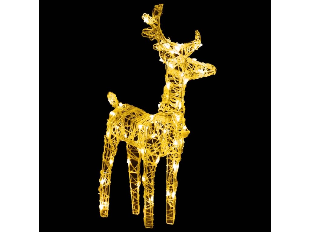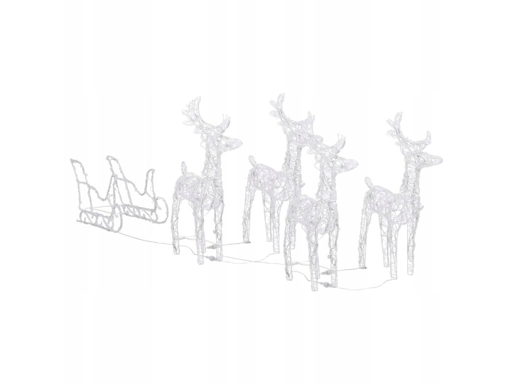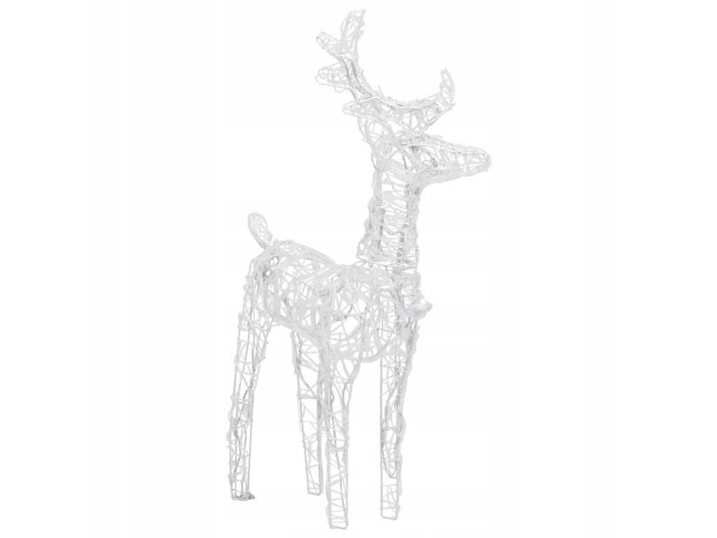 Wykonane z akrylu i PVC na stalowej ramie, podświetlane renifery są odporne na czynniki pogodowe w czasie świąt. Oświetla je 240 diod LED, które są energooszczędne i długotrwałe. 8 różnych efektów świetlnych lub ich kombinacja: powolne rozświetlanie, mruganie, fala, płynąca woda, sekwencja, spokojne i powolne przygaszanie pięknie rozświetlają ozdobę i tworzy magiczną, świąteczną atmosferę.
