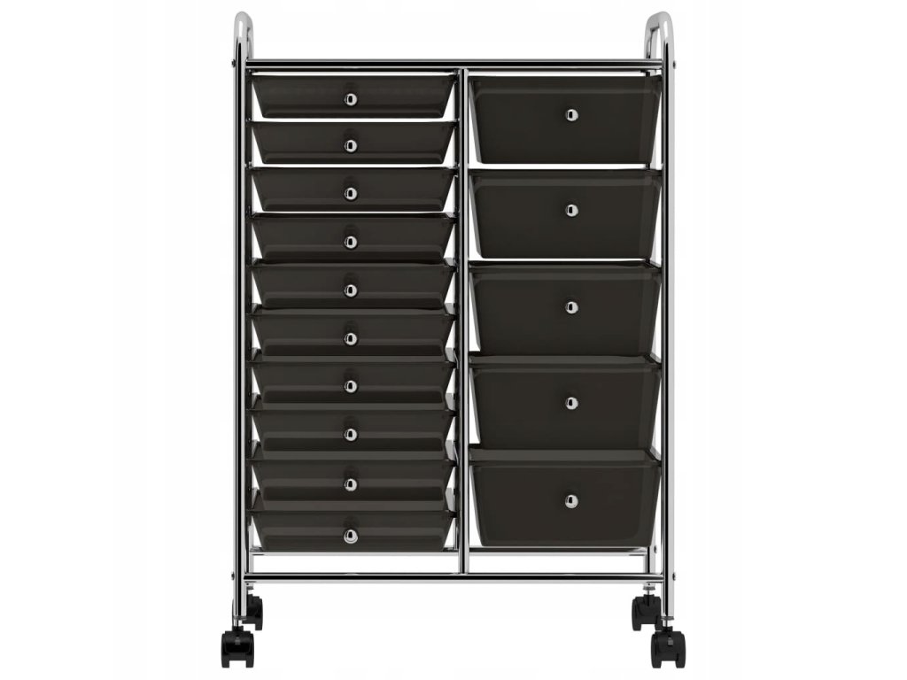 Vozík XXL s 15 zásuvkami, čierny plast