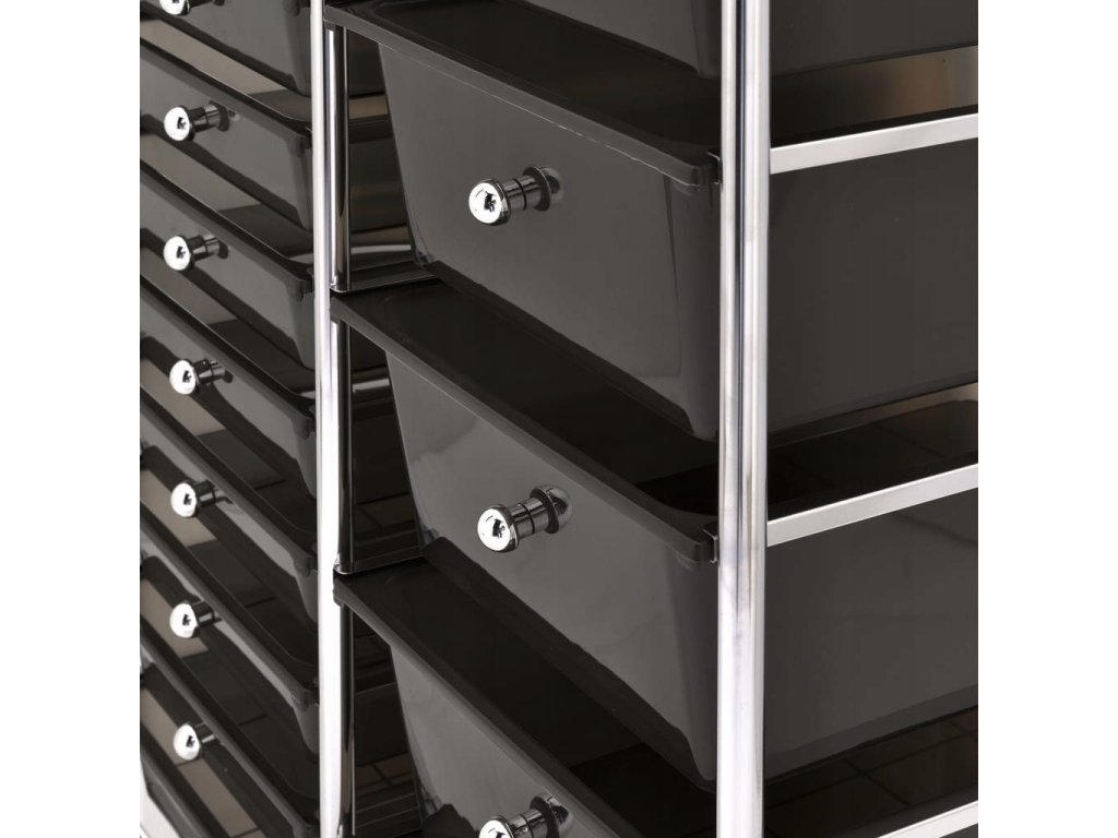Wózek XXL z 15 szufladami, czarny, plastikowy