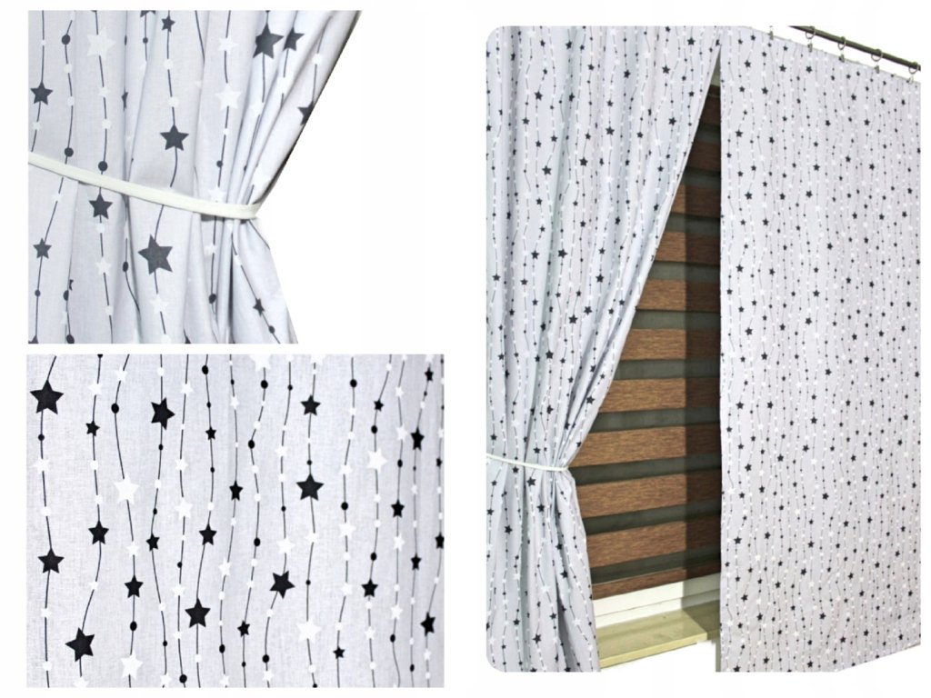 • Szerokość 75 cm (miara jednej zasłony przed zmarszczeniem).