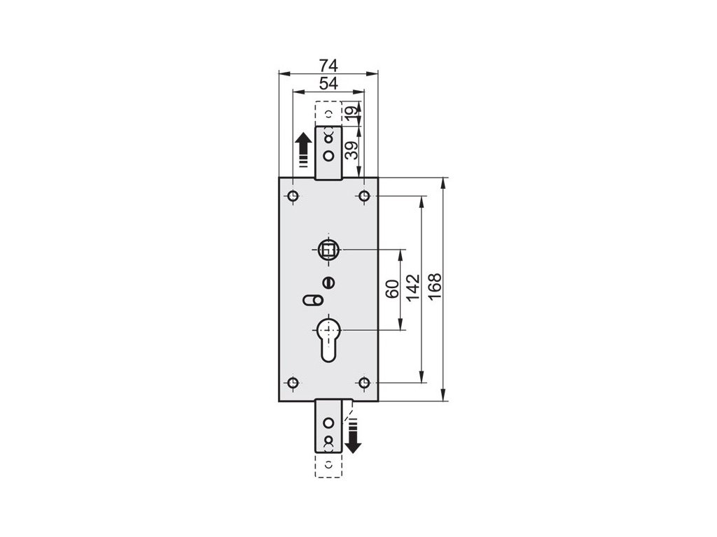 Zamek KASTEL-1 produkowany jest z dwoma lub z jedną dolną końcówką ryglową.