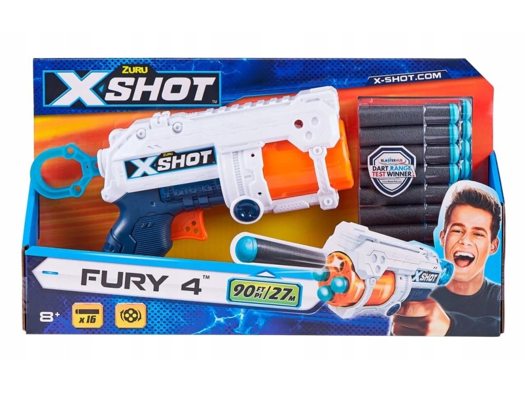 • 1x pistolet X-Shot Excel Fury-4 Dart Blaster