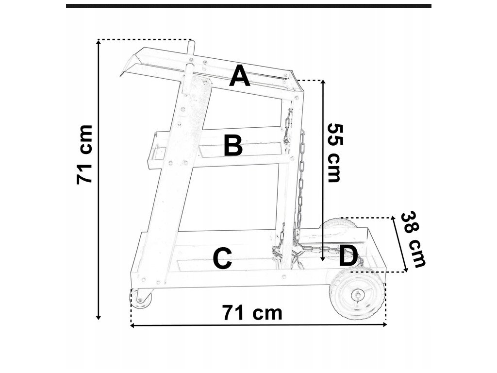 Solidny wózek spawalniczy o wytrzymałej stalowej konstrukcji. Wykonany ze stali malowanej proszkowo. Maksymalne obciążenie do 45 kg.