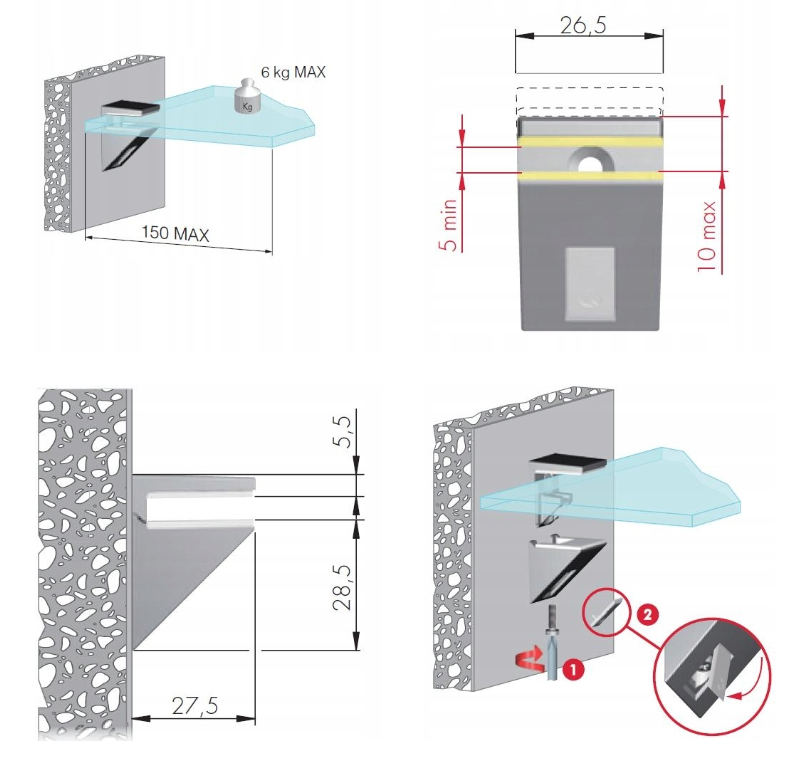 Držiak na sklenenú policu CHROM