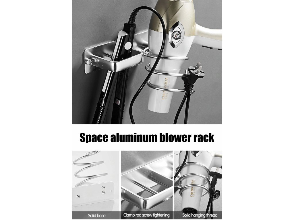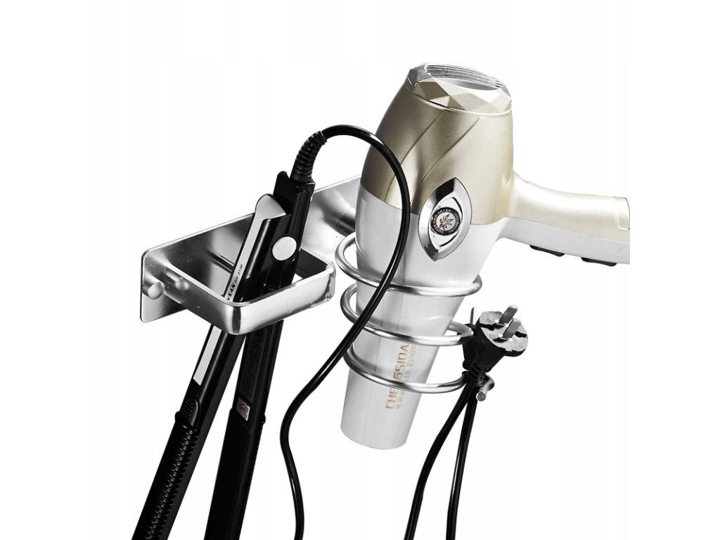 • elegancki uchwyt na suszarkę do włosów i prostownicę, idealny do domu lub salonu fryzjerskiego
