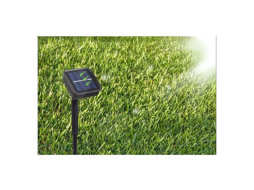 Sada 100 ks LED svietidiel (gulí) na 14 metrovom kábli so solárnym panelom s hrotom na montáž.