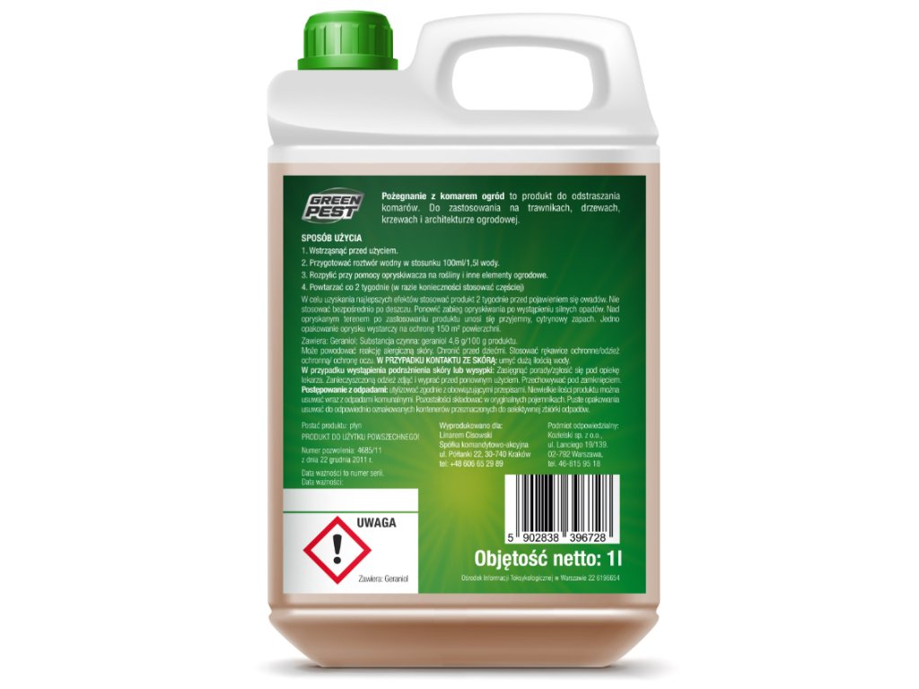 Green Pest repelent proti komárom je produkt na odpudzovanie komárov a kliešťov. Používa sa vonku, v záhrade, na trávnikoch, stromoch, kríkoch, kvetoch, záhradnej architektúre.