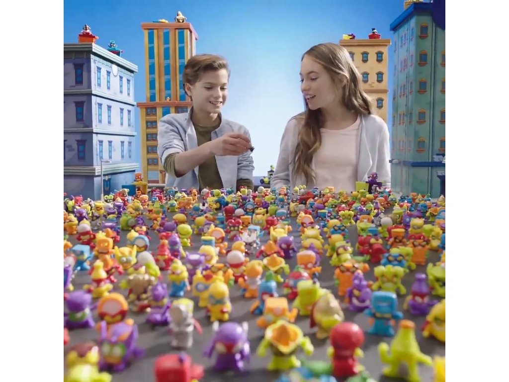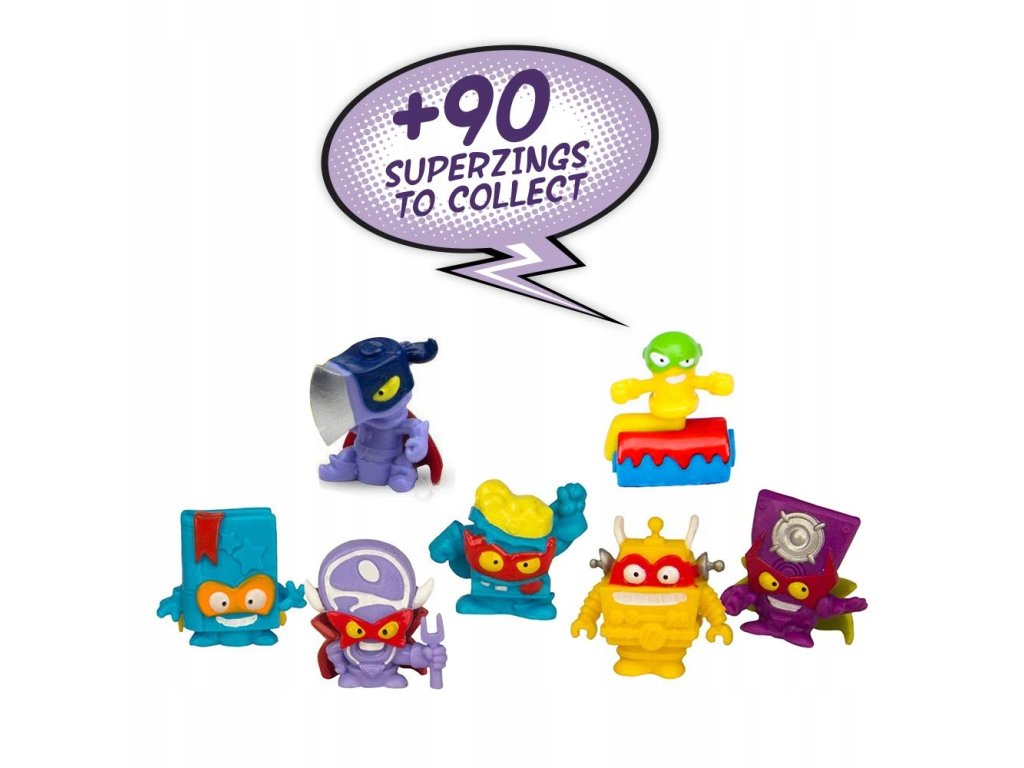 SuperZings to przedmioty codziennego użytku przekształcone w figurki Superbohaterów i Superzłoczyńców, które ścierają się ze sobą w Kaboom City. Każda z postaci dysponuje specjalną mocą, dzięki której może znaleźć i pokonać rywali. SuperZings używają swoich supermocy, chowają się w tajemniczych kryjówkach, ścigają się po ulicach wyjątkowymi pojazdami SuperJets.