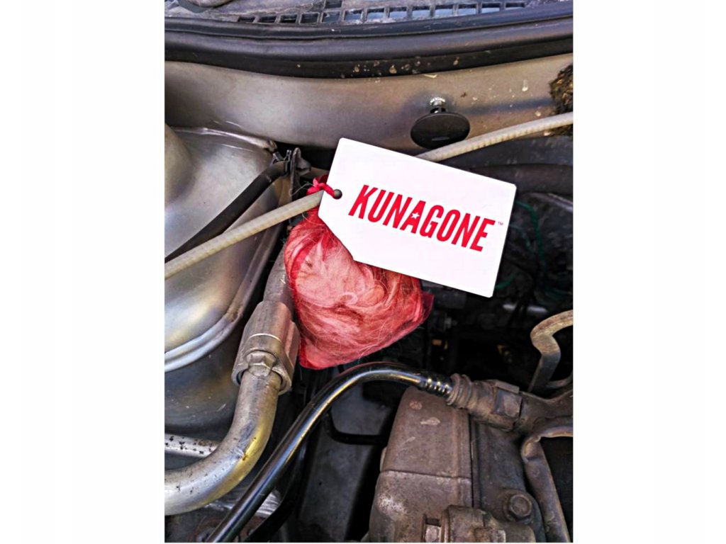Wystarczy umieścić zawartość opakowania pod maską samochodu lub na poddaszu, a zapach woreczka KUNAGONE wytworzy barierię ochronną.