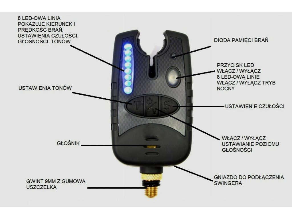 S - możemy ustawić regulacje czułości i szybkość brań na jaką sygnalizator będzie reagować przy braniu.