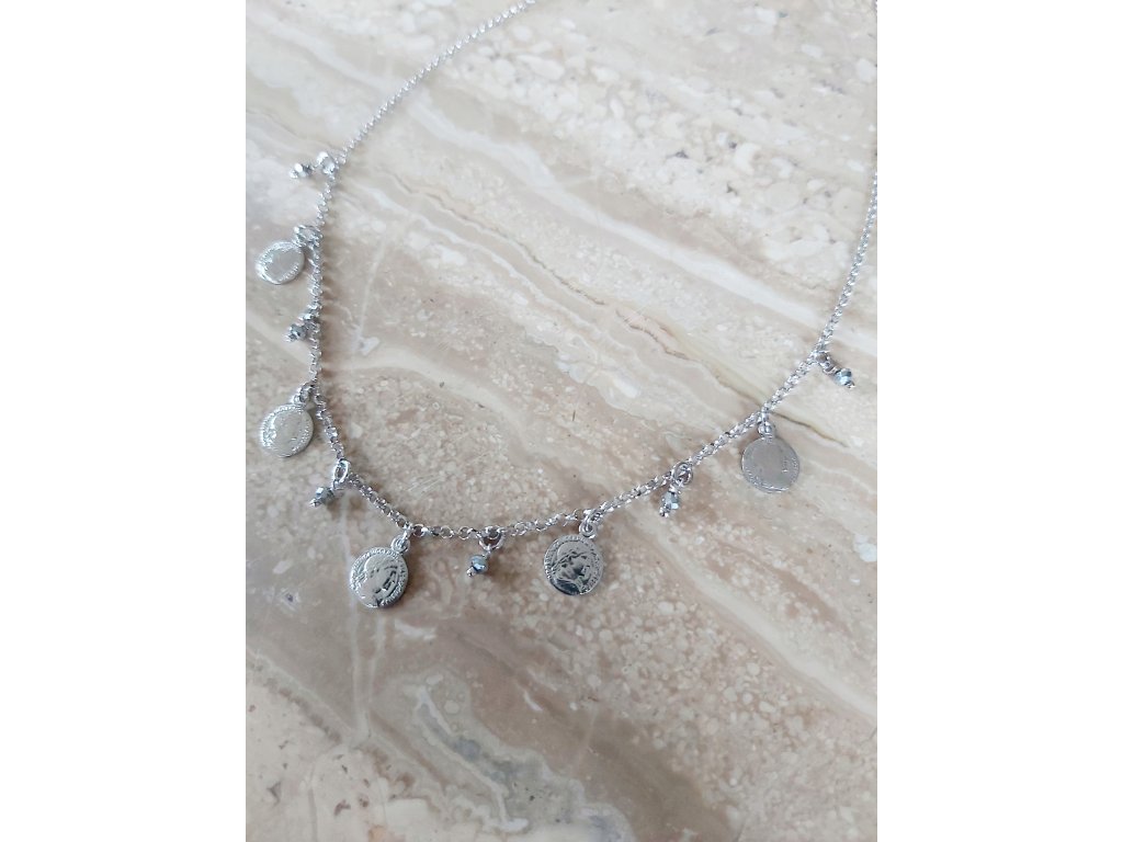 Przedmiotem sprzedaży jest srebrny 925 naszyjnik, monety, N64.