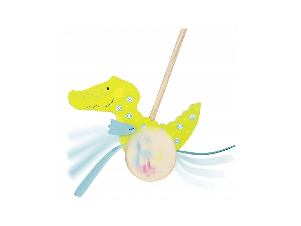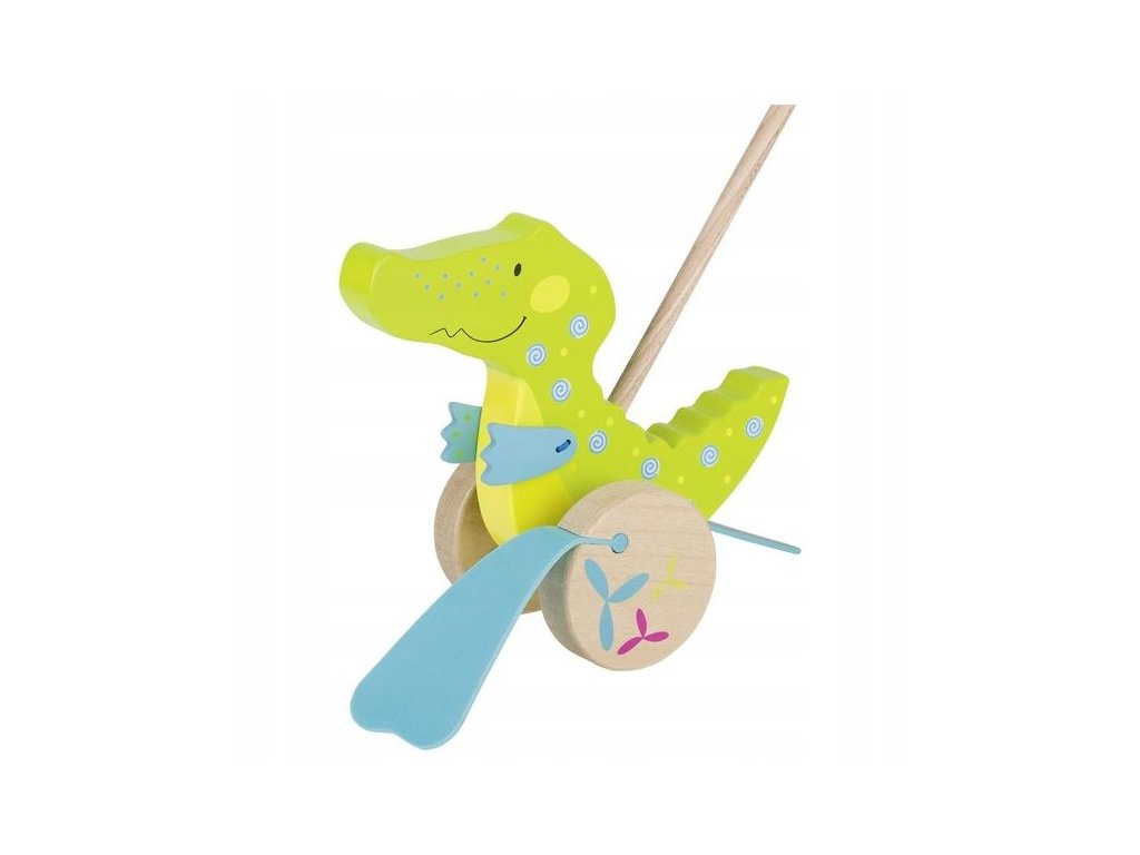 Dzieci uwielbiają zabawki do pchania na kiju. Te wykonane z drewna będą służyły dziecku długo, nawet podczas długich spacerów. Krokodyl ma wesołe ubarwienie w bardzo dobrej jakości wykonania. Łapki krokodyla można obracać.