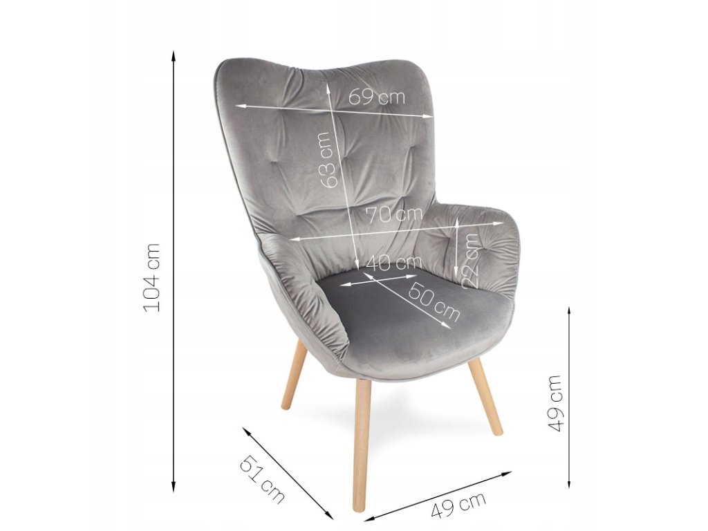 ARMCHAIR USZAK v škandinávskom štýle RETRO OBÝVACIA IZBA F906G