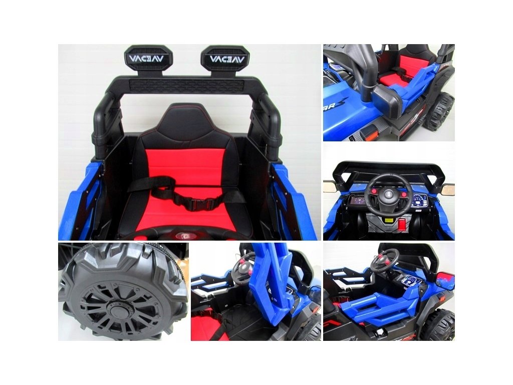 - diaľkovo ovládané pomocou diaľkového ovládača a dieťa môže jazdiť aj samostatne pomocou volantu a plynového pedálu