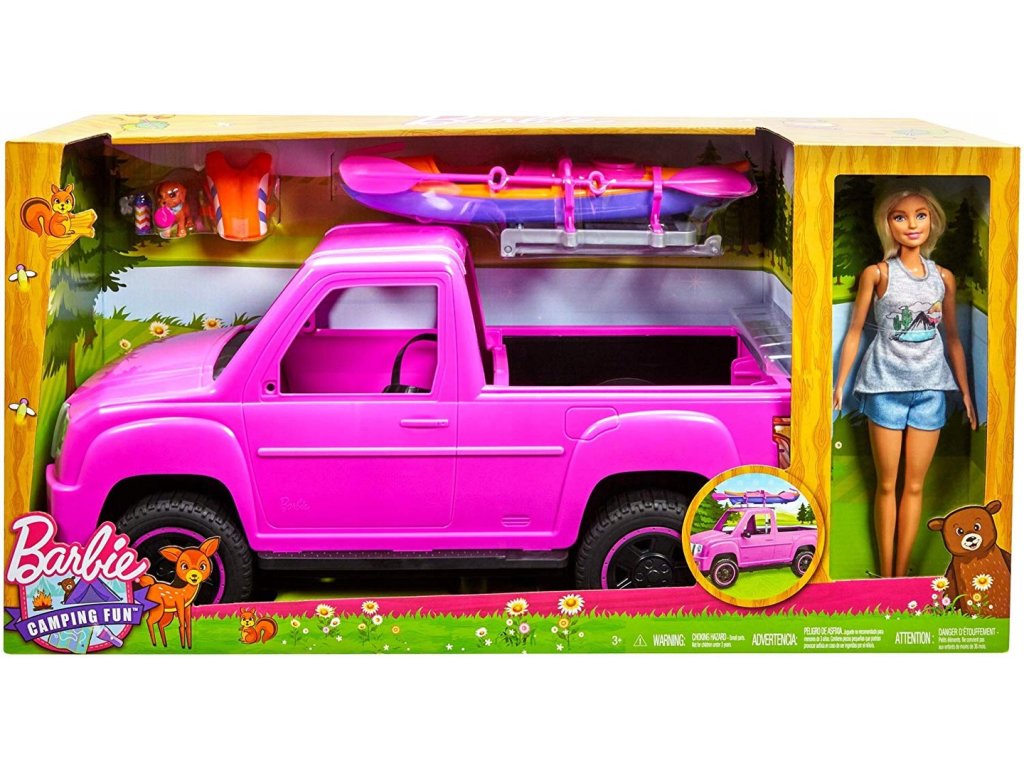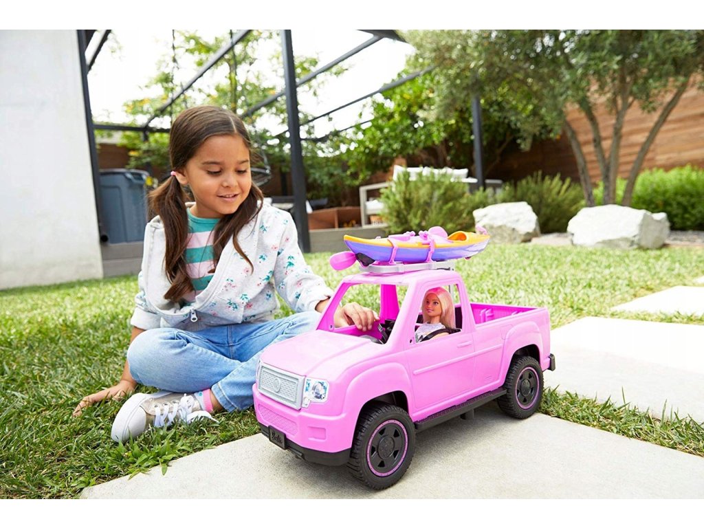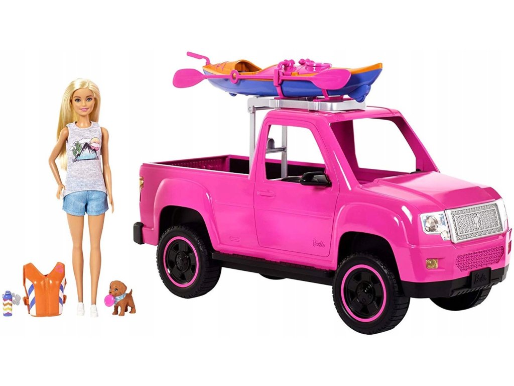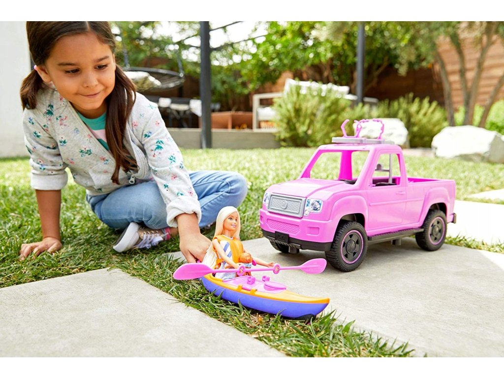 Vezmite bábiku Barbie® a jej šteniatko, kempujte, jazdite v teréne, jazdite na kajaku a oveľa viac s touto zábavnou sadou obytných áut. Bábika Barbie® má chladivú ružovú dodávku so strešným nosičom na jej kajak, ktorý je tiež súčasťou balenia! Milovníci outdoorových aktivít si môžu užiť rôzne dobrodružstvá s herným vozidlom na zemi alebo na vode! Nákladné auto má otočené kolesá, priestor pre dve bábiky (iné bábiky sa predávajú samostatne), korbu nákladného auta s priestorom na vybavenie a odnímateľný striebristý strešný nosič. Odpojte závesy stojana, aby ste uvoľnili kajak a ponorte sa do príbehov o „rýchlom“ tempe. Nasaďte bábiku Barbie® na sedadlo kajaku, zveste veslo z člna a pripevnite ho na ruky bábik Barbie®, aby ste si mohli zahrať rolu.