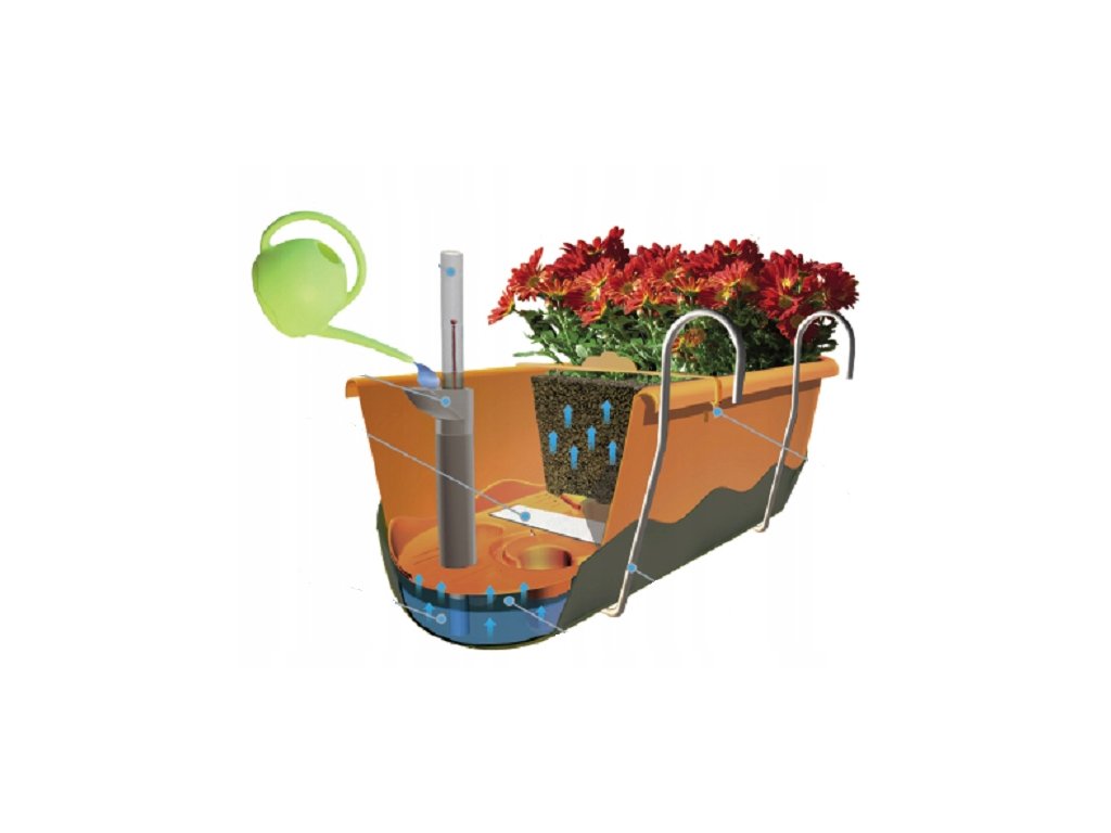 Dzięki systemowi nawadniania oraz wskaźnikowi poziomu wody można optymalnie zaopatrzyć rośliny w wilgoć i niezbędne nawozy.