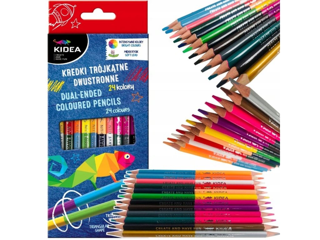 Obojstranné trojuholníkové školské pastelky 24 farieb KIDEA