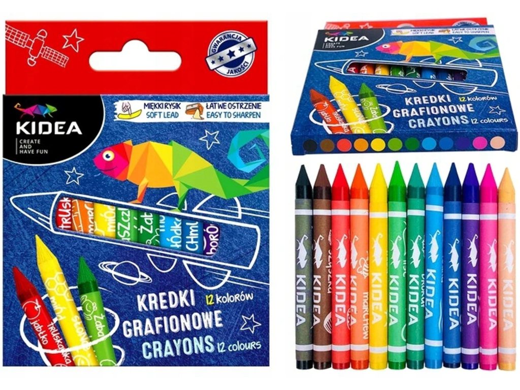 Grafionové pastelky z kaolínovej hliny v 12 intenzívnych farbách. Veľmi dobre kryjú a sú vhodné na vyplnenie veľkých plôch.