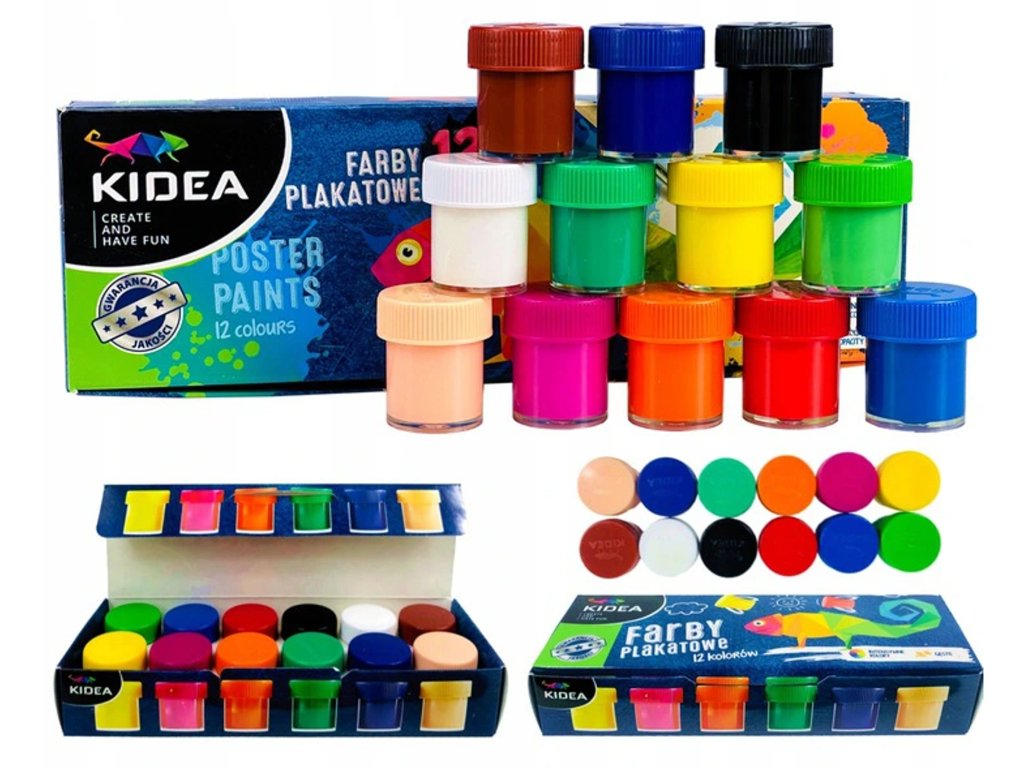 • 12 farebných plagátových farieb - veľké nádoby po 20 ml