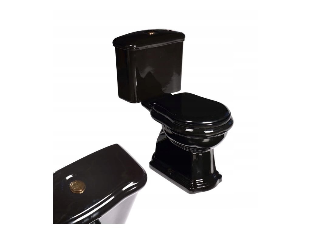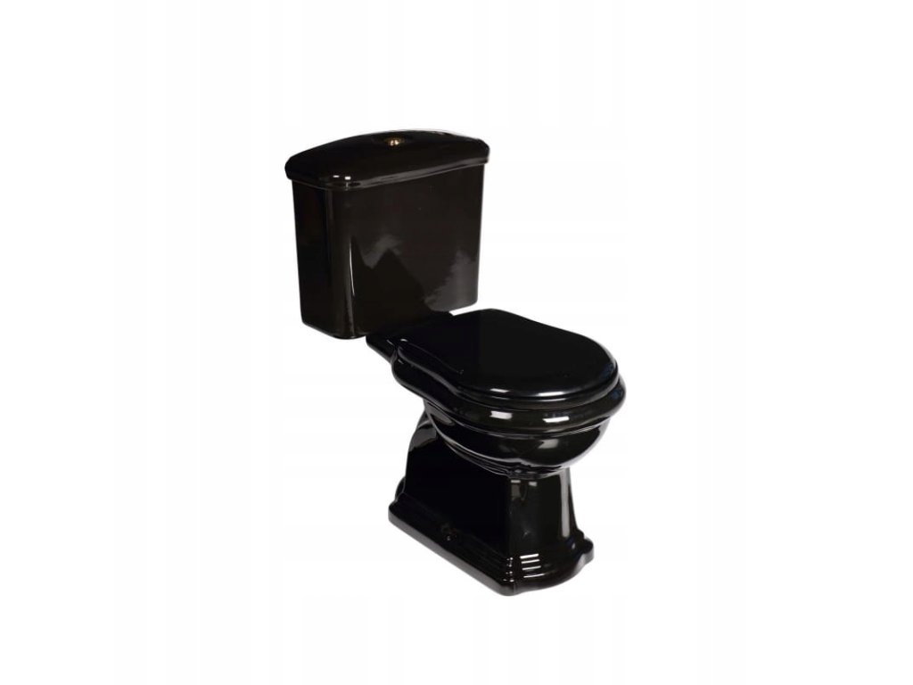 WC KOMPAKT CZARNY RETRO Z DESKĄ PIONOWY (WARSZAWSKI) ,ZŁOTY PRZYCISK PODWÓJNY