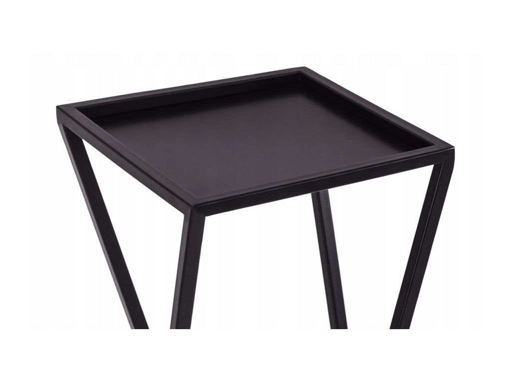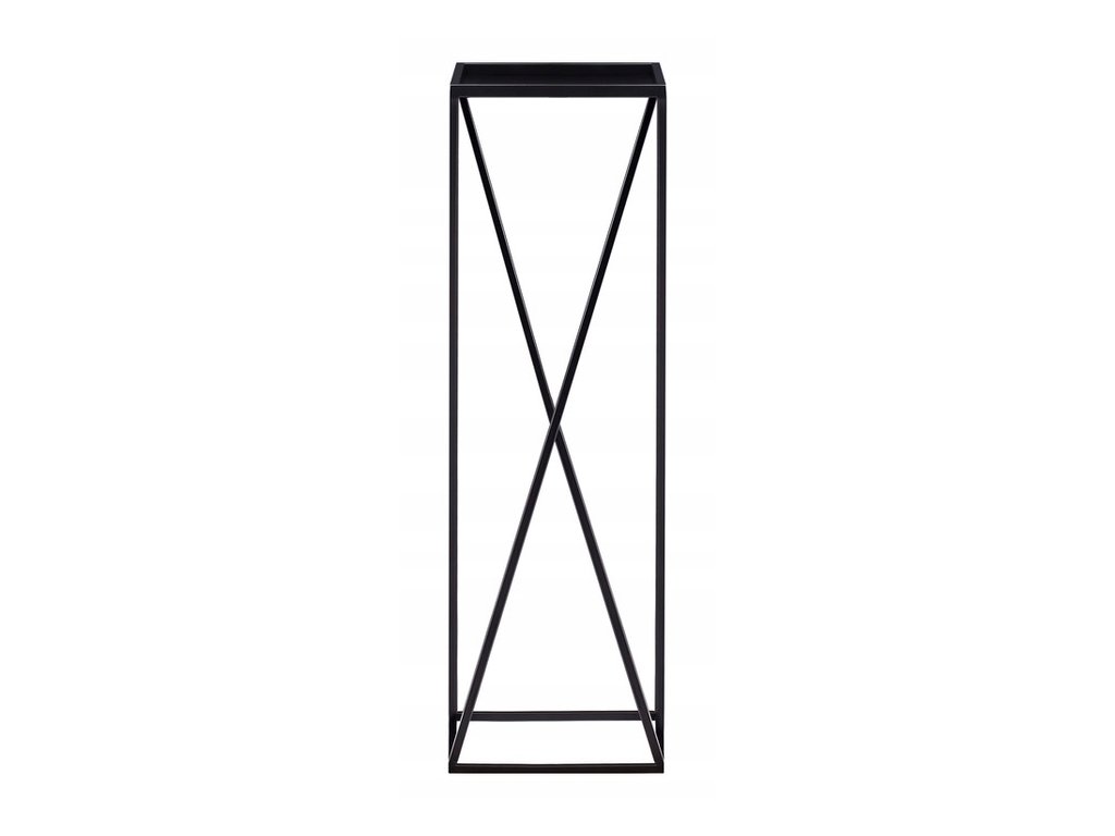 Modernistyczny stojak wykonany z metalu w kolorze czarny półmat.