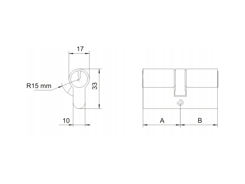 Cylindrická vložka LOB kompatibilná so zadlabávacím zámkom. Klasifikácia vložky podľa PN EN 1303:2015-07: 1 6 0 B 0 C 4 0: