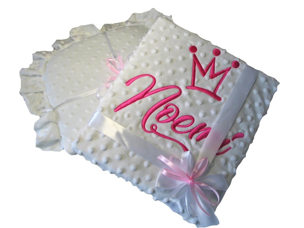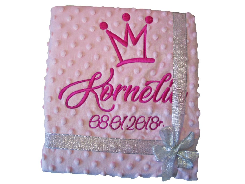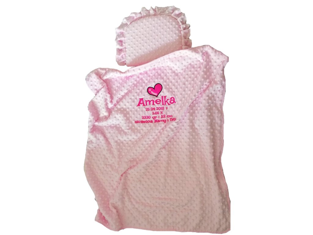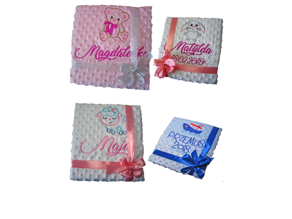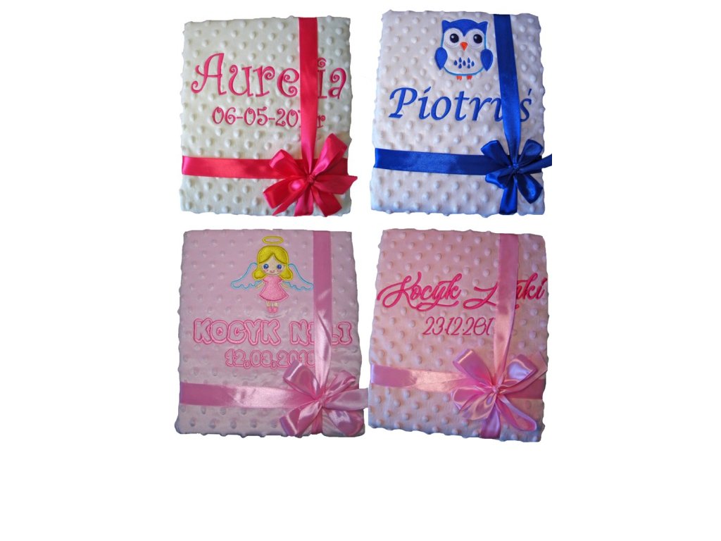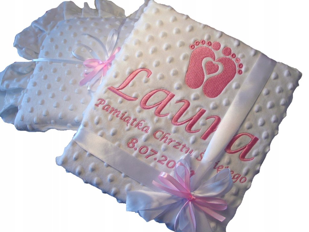 Miękki kocyk MINKY 80 cm x 90 cm z haftem Twojego pomysłu +PODUSZKA