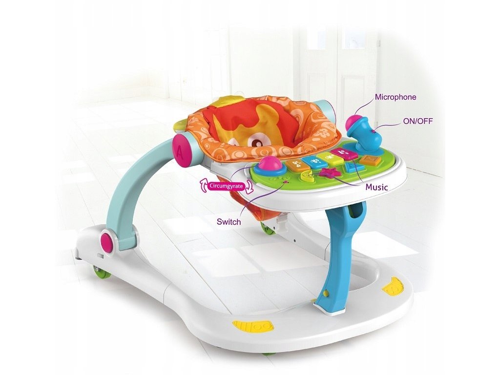 Prosty w zmianie formy korzystania, chodzik na pchacz lub zabawkę,