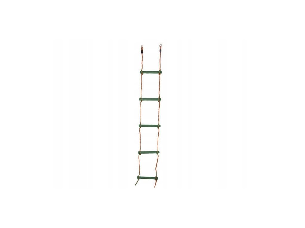 Drabinka sznurowa pięciostopniowa to urządzenie łączące dobrą zabawę z rozwojem fizycznym dziecka i pozwala oglądać świat z wysokości. Przeznaczona do użytku zarówno na zewnątrz jak i wewnątrz pomieszczeń. Szerokie zastosowanie w różnego rodzaju konstrukcjach lub zestawach zabawowych niewielkim kosztem zwiększy ich możliwości i funkcjonalność oraz pozwoli je dodatkowo uatrakcyjnić w oczach dziecka. Może być stosowana również oddzielnie. Jest bardzo łatwa w montażu a sam sposób zamontowania jest trwały i bezpieczny.