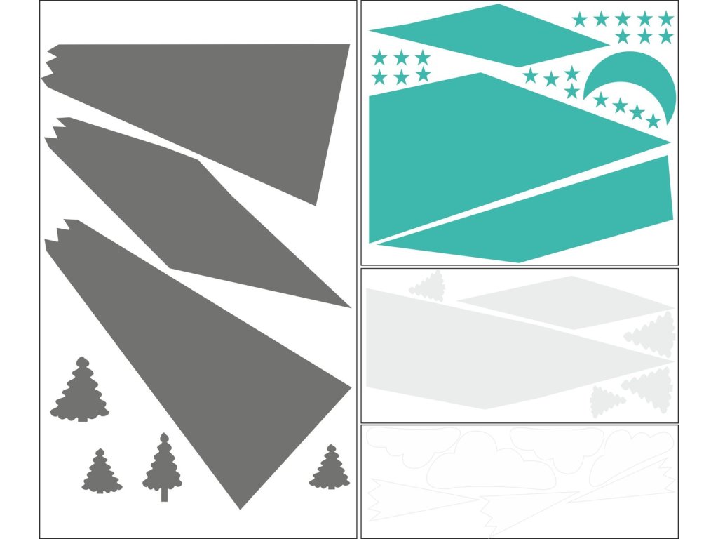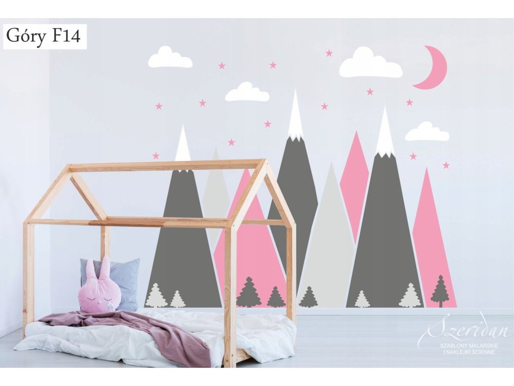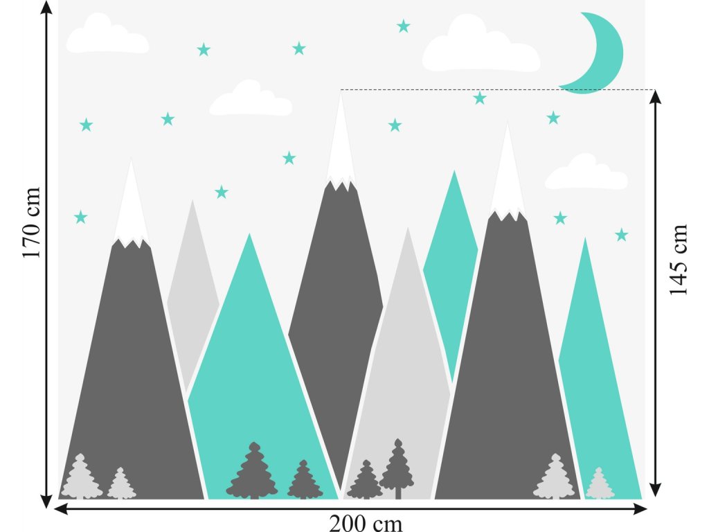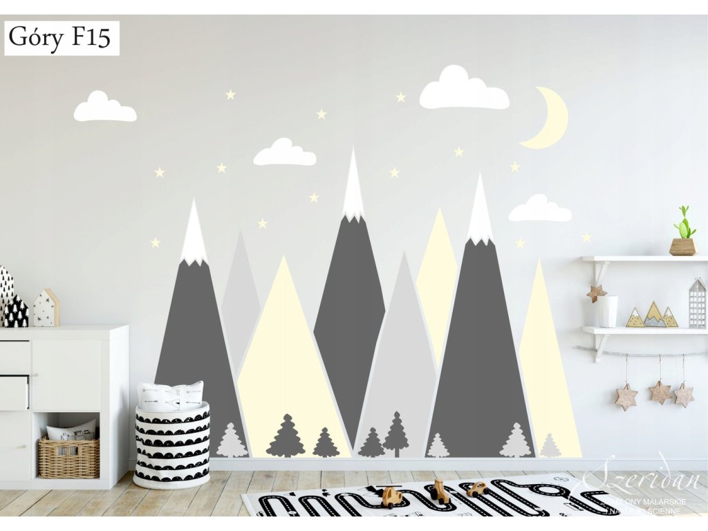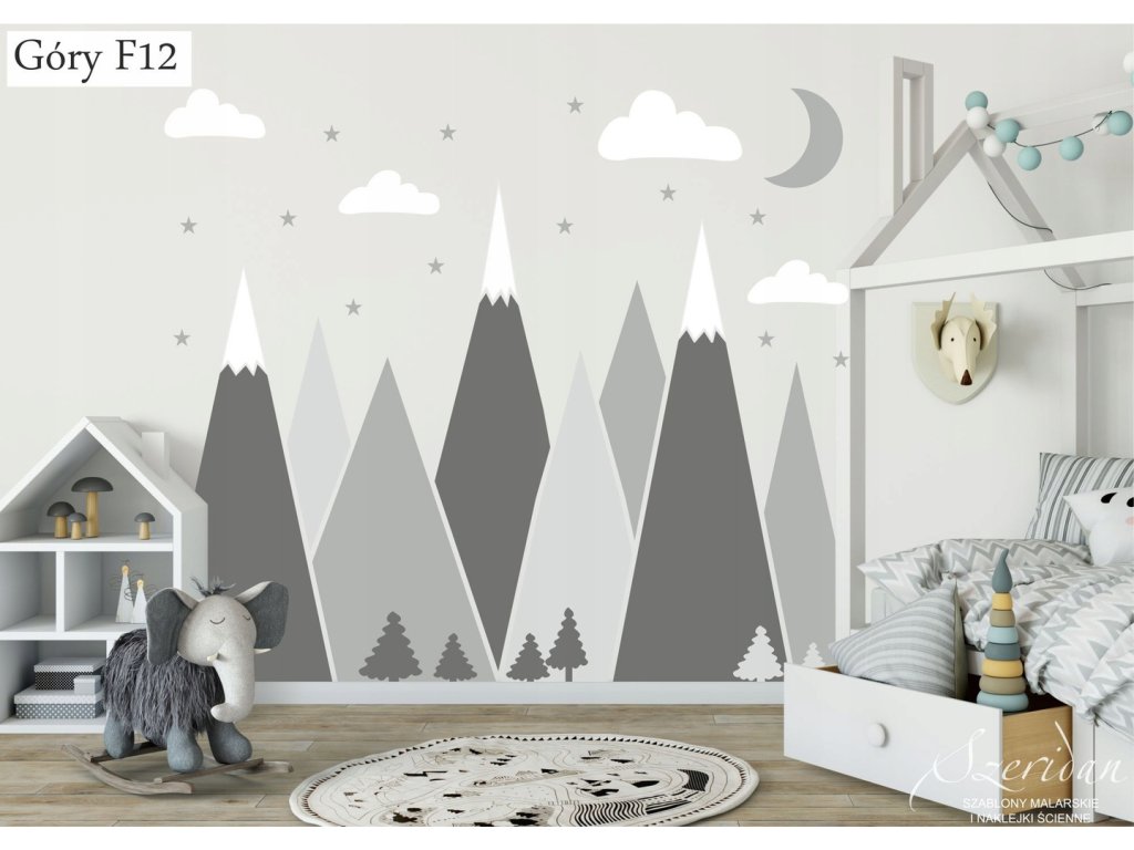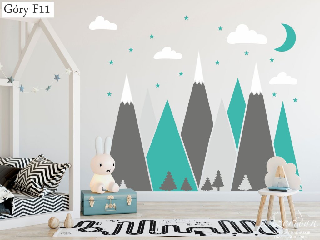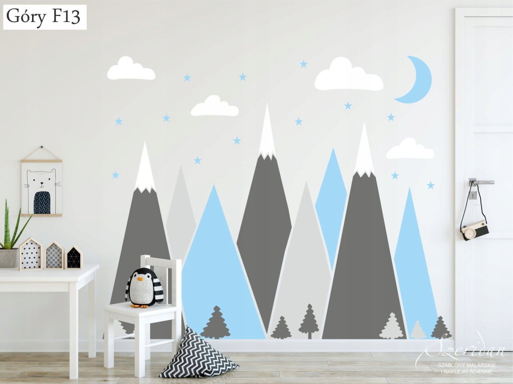Naklejki na ścianę góry, to absolutny strzał w dziesiątkę. Jest to bardzo nowoczesna dekoracja, która nada pokojowi twojego dziecka całkowicie nowy wygląd. Naklejki wycięte są z matowej foli, każdy element przykleja się osobno, można je przykleić na dowolnej płaskiej powierzchni - ścianie, szafie itp.