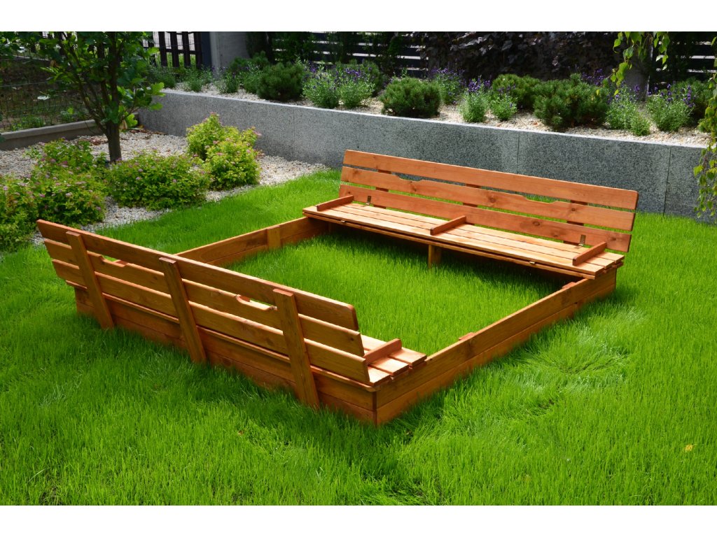 Detské pieskovisko - Pieskovisko 180 x 180 s uzavretými lavicami + DNO