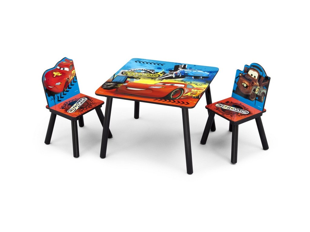 Stôl a stoličky krásne zdobené farebnými motívmi . Všetky okraje stola boli vyhladené pre bezpečnosť dieťaťa. Produkt je nielen užitočný, ale aj krásne dekoruje detskú izbu. Ak chcete odstrániť nečistoty, jednoducho utrite stôl vlhkou handričkou. Nová položka pod licenciou Disney.