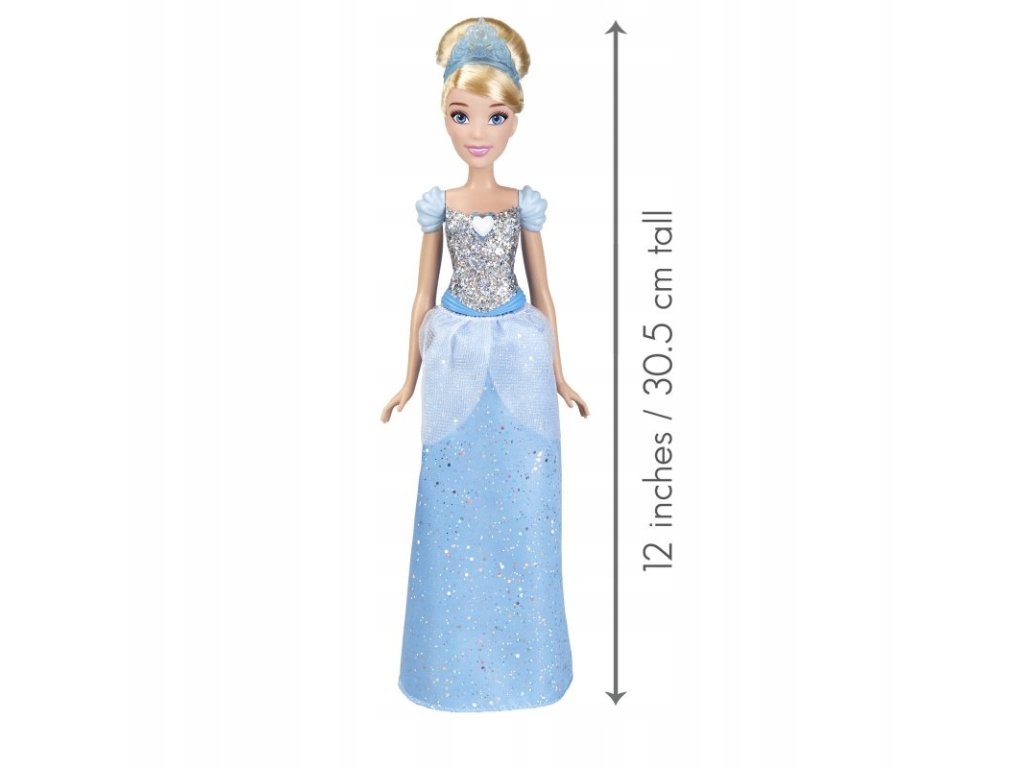 Lalka Brokatowa Księżniczka Kopciuszek E4158. Rozpocznij swoją bajkową kolekcję z nowymi lalkami. Kolekcja księżniczek Disneya to wspaniała propozycja dla dziewczynek. Lalki są dokładnie takie, jak w kultowych filmach, identycznie odwzorowują ulubione przez dziewczynki bohaterki: wzrostem, figurą oraz strojem. Każda z nich ubrana została w przepiękną kreację, która efektownie mieni się w świetle! Przeżyj niezapomniane chwile znane z wielkiego ekranu na nowo, z nową kolekcją Brokatowych Księżniczek Disneya. Lalka Kopciuszek w pięknym stroju, ozdobionym mieniącymi się drobinkami brokatu, spódnica z materiału, zdejmowane pantofelki oraz diadem we włosach.