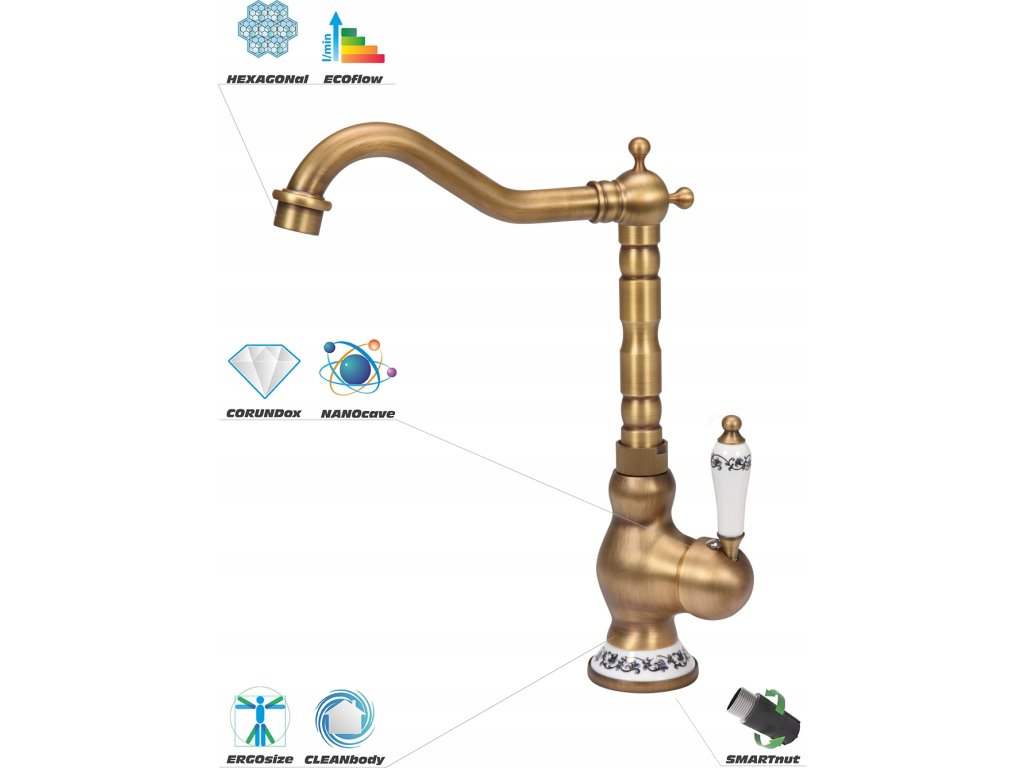 Baterie zlewozmywakowe Retro łączą tradycyjny styl i innowacyjne technologie, które gwarantują wysoką jakość i bezproblemową eksploatację przez wiele lat. Ponadczasowy design armatury doskonale uzupełni stylistykę klasycznej lub nowoczesnej kuchni. RETROlook – ponadczasowy i tradycyjny styl, który doskonale uzupełni stylistykę Twojej kuchni
