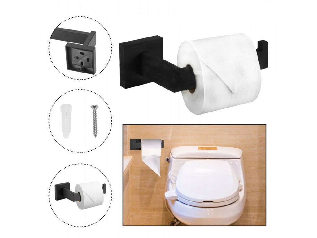 Držiak papiera Držiak na toaletný papier hranatý - čierny