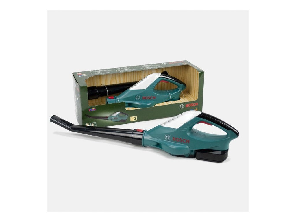 Dmuchawa do liści jest zielona z elementami kolorów czarnego, czerwonego i srebrnego i ma logo firmy Bosch. Posiada czarną odczepianą rurkę i wygodną rączkę, której wielkość jest dopasowana do rąk dziecka. Po naciśnięciu przycisku znajdującego się pod rączką urządzenie naprawdę dmucha powietrzem! Z pewnością spodoba się wszystkim chłopcom uwielbiającym naśladować dorosłych mężczyzn używających rozmaite urządzenia i narzędzia. Dzięki zabawce dziecko będzie mogło w zupełnie bezpieczny sposób pomóc tacie przy porządkach w ogrodzie lub przed domem.