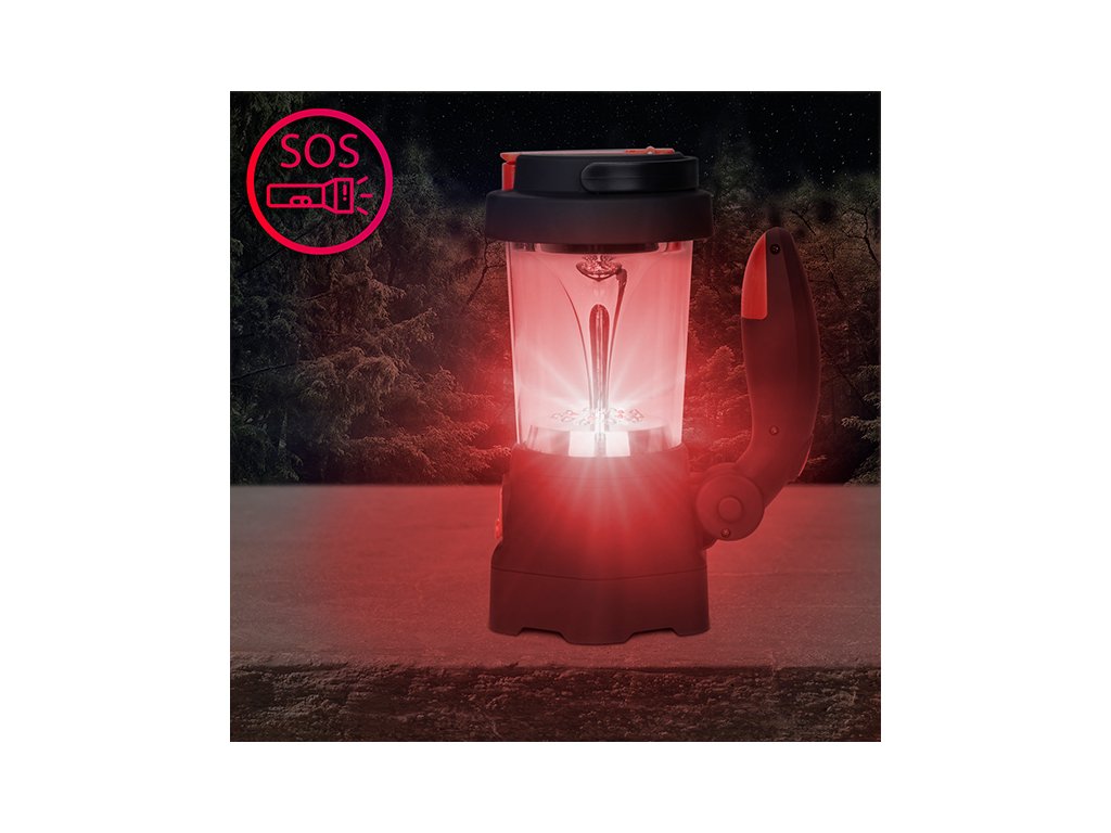• Lampa pracuje w trzech różnych trybach. Może być używana w trybie latarni. W tym trybie pracuje aż 10 osobnych wiązek światła LED dając najwięcej światła (32 Lm.). W trybie latarki pracują 3 żarówki LED dając wystarczającą ilość światła do oświetlenia ścieżki (18 Lm.). W trybie SOS lampa emituje wiązkę czerwonego światła przez 5 żarówek LED. Tryb jest szczególnie przydatny w przypadku jakiegokolwiek wypadku.