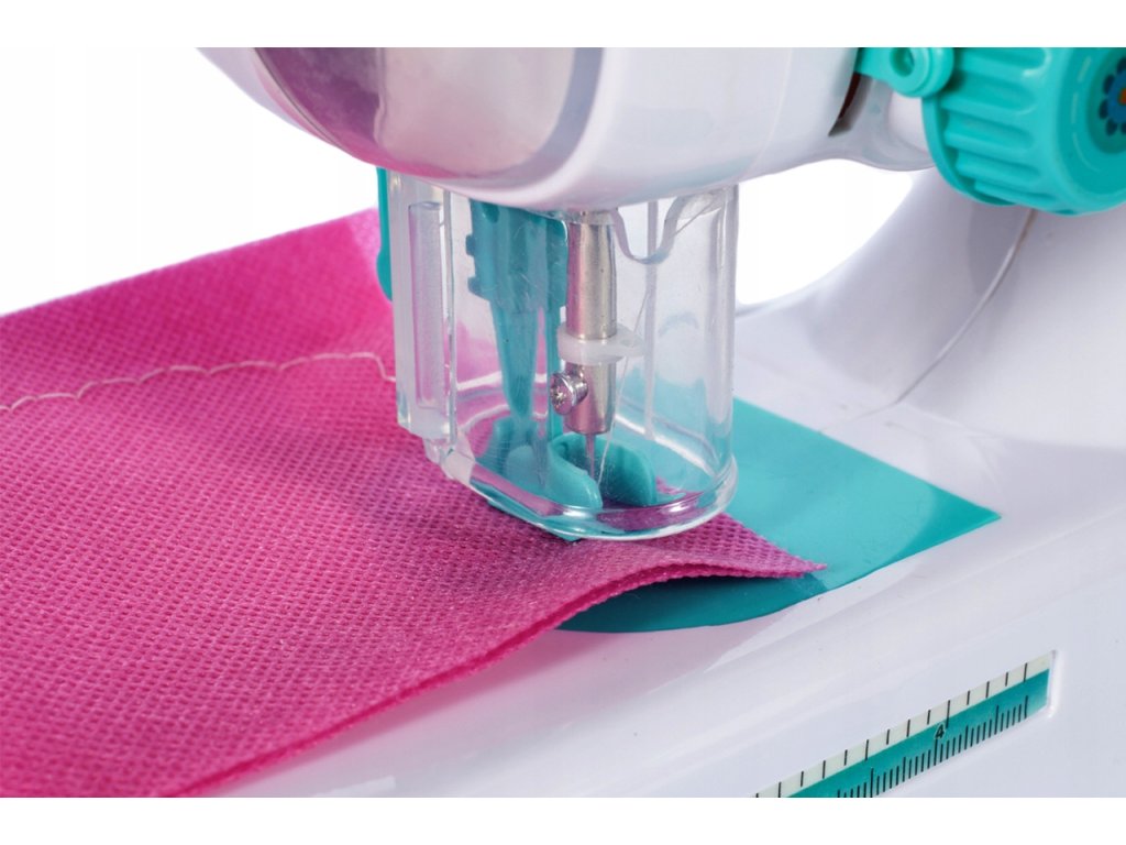 Wszystko w tej zabawce działa jak w przypadku normalnej maszyny. Możliwe ustawienie jest naciągu jak i wzoru prowadzonego ściegu.