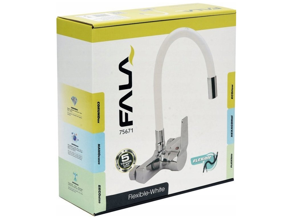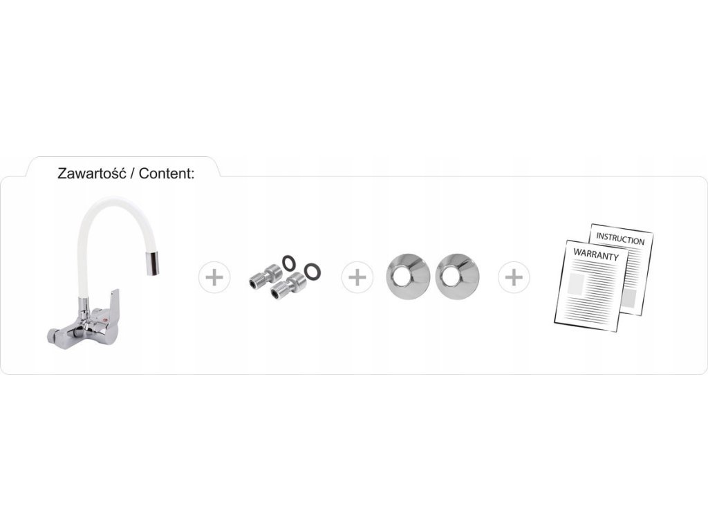 BATERIA ZLEWOZMYWAKOWA ŚCIENNA Z ELASTYCZNĄ WYLEWKĄ FLEXIBLE WHITE