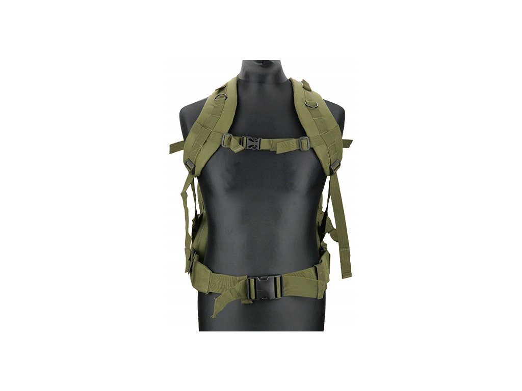 Główna kieszeń została podgumowana co zapewnia plecakowi częściową wodoodporność. Na froncie i bokach plecaka naszyto pasy systemu modułowego MOLLE, które umożliwiają mocowanie dodatkowych kieszeni/ładownic. Na bokach i spodzie umieszczono ponadto taśmy kompresyjne zapinane na klamry typu fastex, które mogą też pełnić funkcję troków do mocowania dodatkowego wyposażenia na zewnątrz plecaka. System nośny plecaka składa się z regulowanych szelek oraz pasa biodrowego.