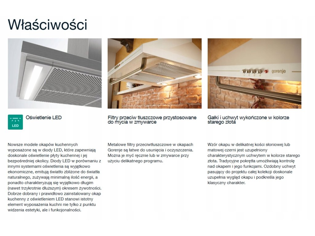 GORENJE DK63MCLI NÁSTENNÁ RETRO Slonovinová varná komínová kukla