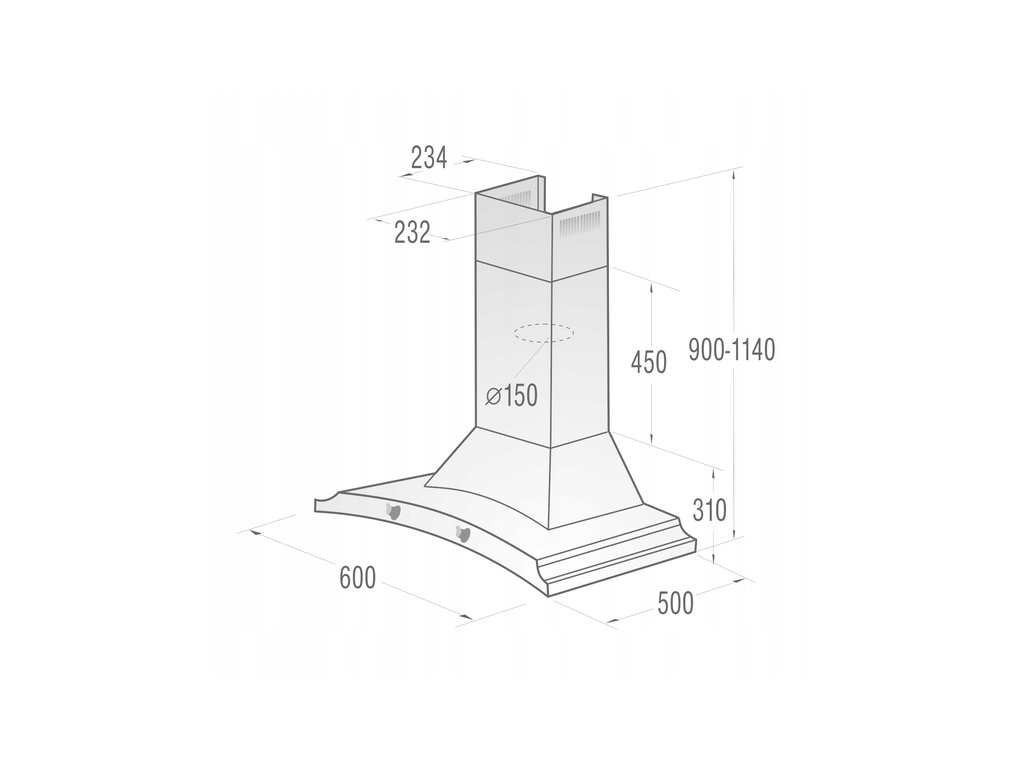 • Materiał okapu/komina: Stal lakierowana / Stal lakierowana