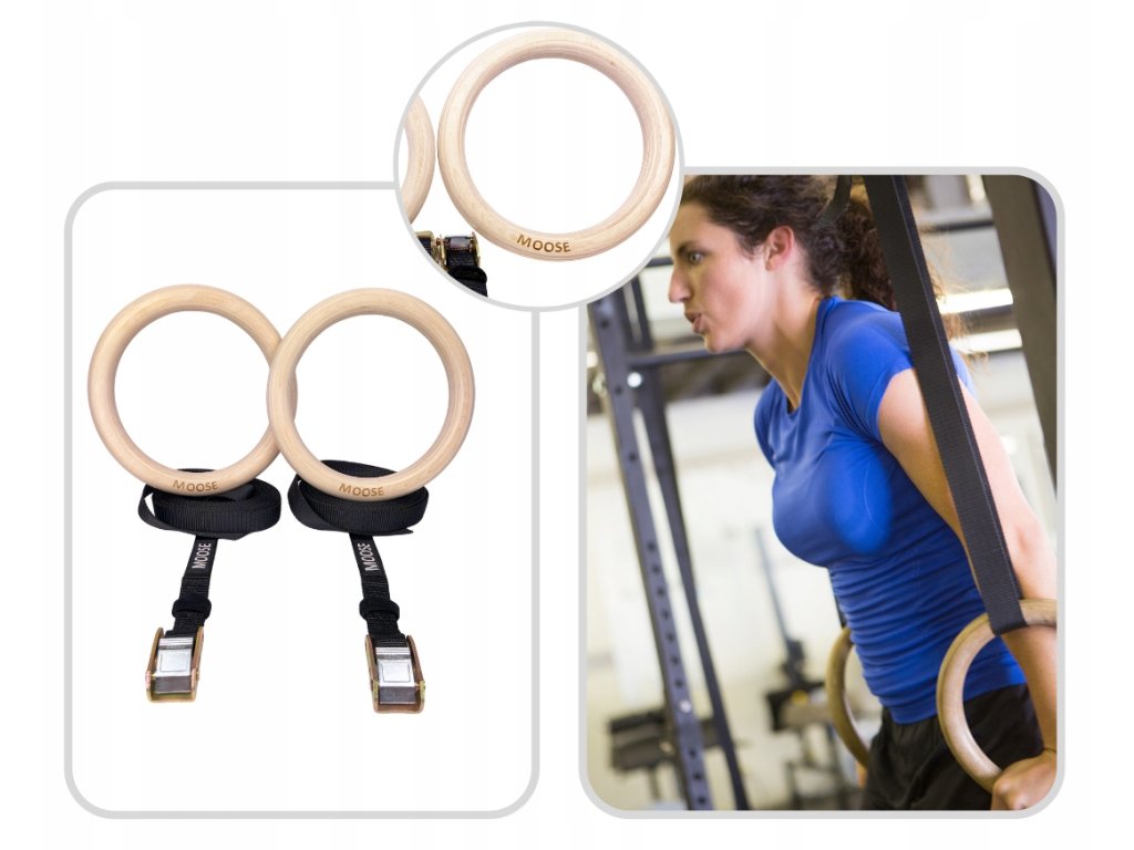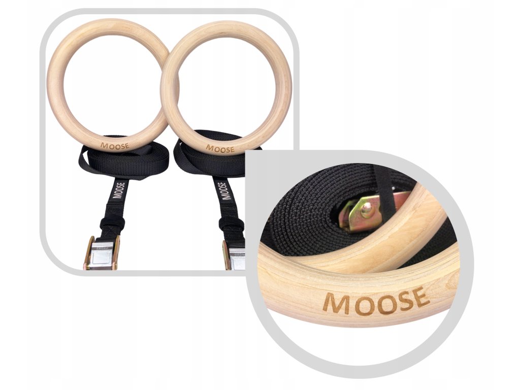 Kółka gimnastyczne z pasami, drewniane obręcze do ćwiczeń MOOSE Sports