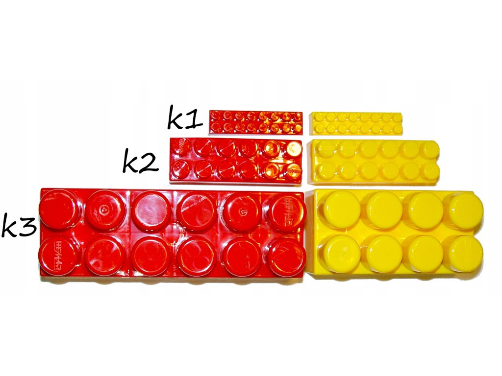 Klocki K2 o szerokości 30 mm przeznaczone są dla dzieci już od 2 roku życia, pozwalają na tworzenie skomplikowanych budowli, nawet całych miasteczek.