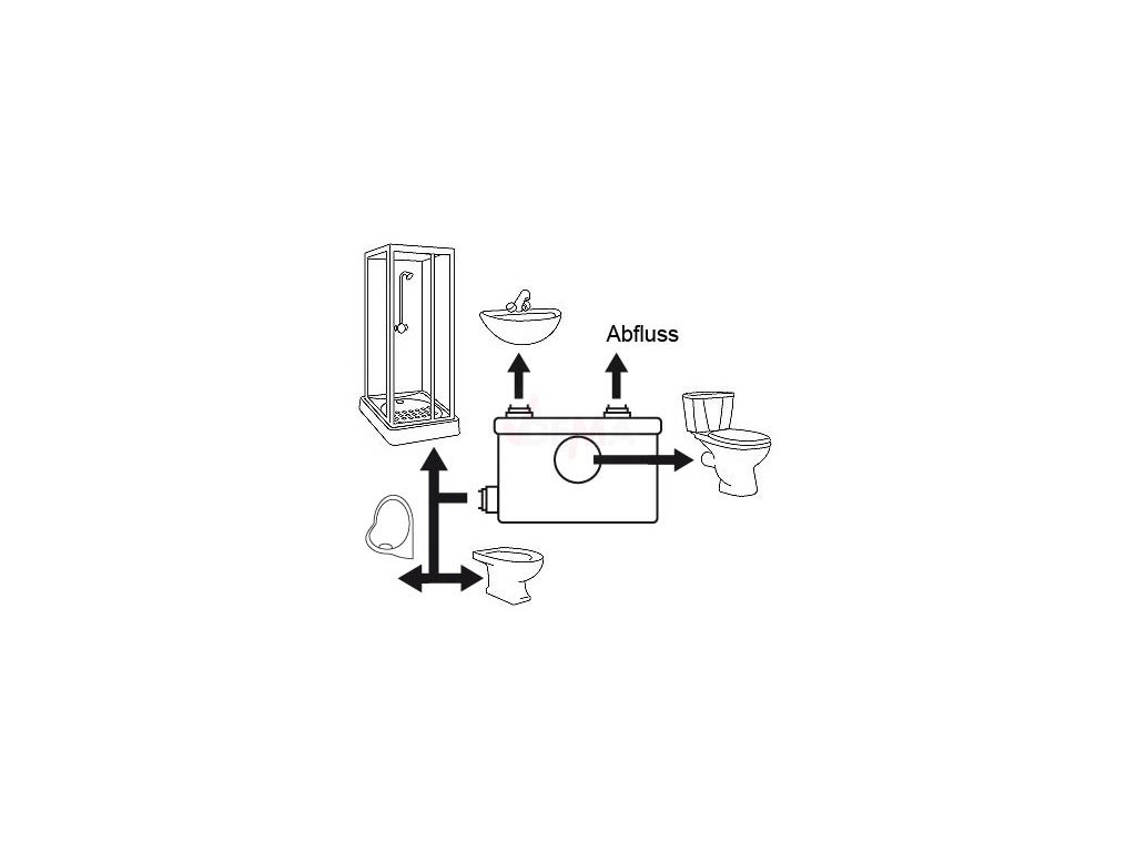 Pompo-rozdrabniacz SANIBO 1 jest przeznaczony do przepompowywania nieczystości z wc i pryszniców oraz pralek i zmywarek jeżeli temperatura wody szarej nie przekracza 90 st.C w miejscach gdzie nie jest możliwe zastosowanie kanalizacji o odpływie grawitacyjnym.