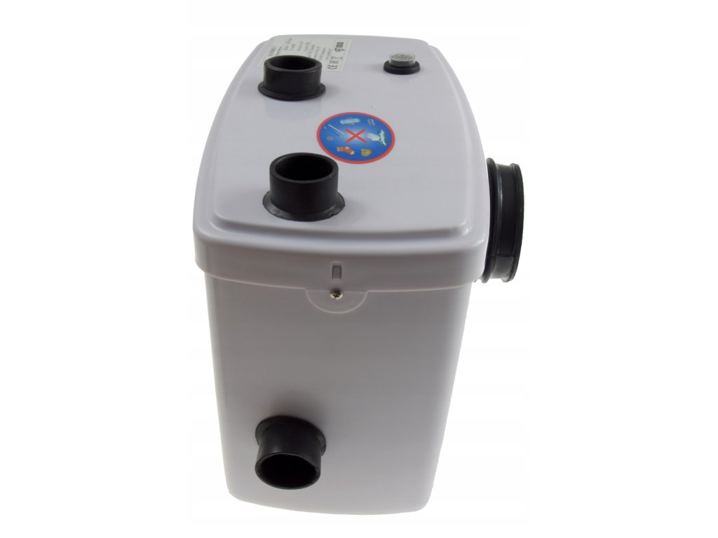 Wyposażony jest w młynek dzięki czemu papier toaletowy i fekalia mogą być tłoczone rurami nawet o przekroju 32mm.