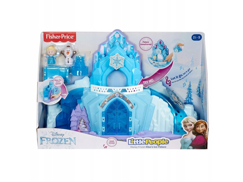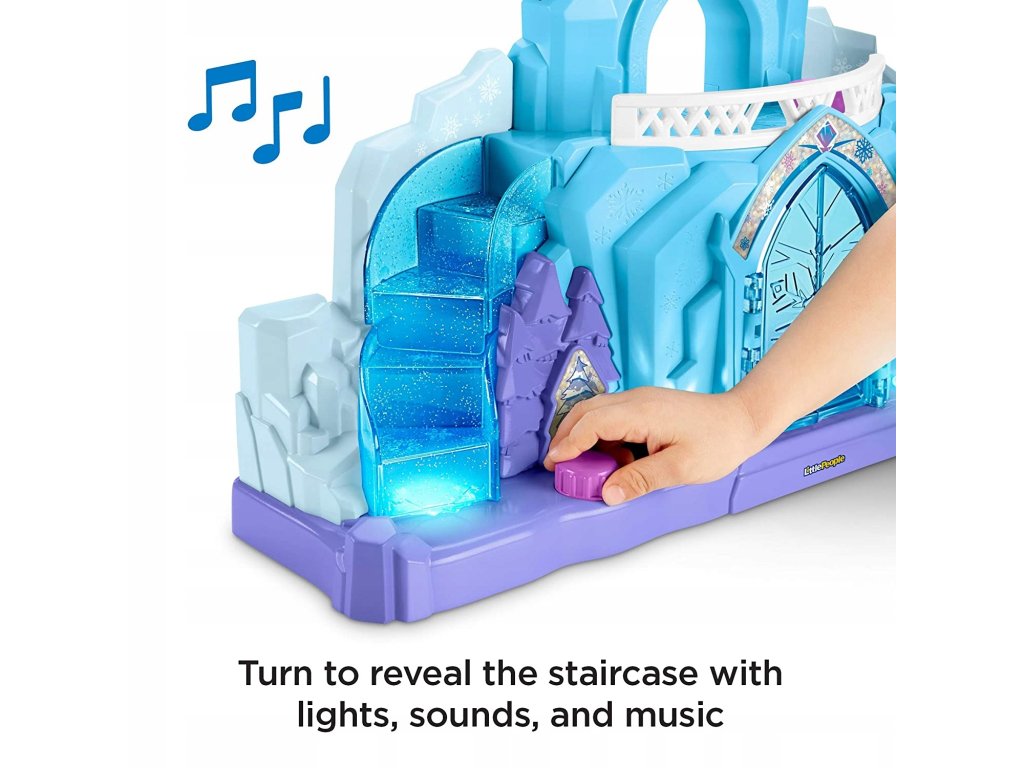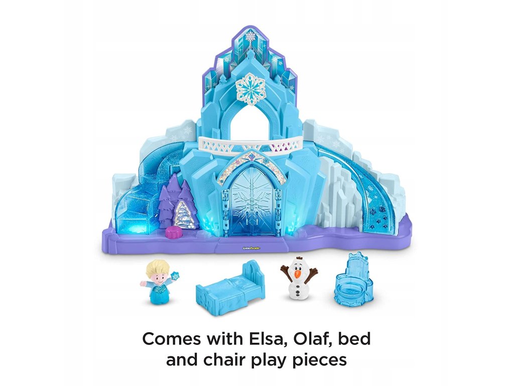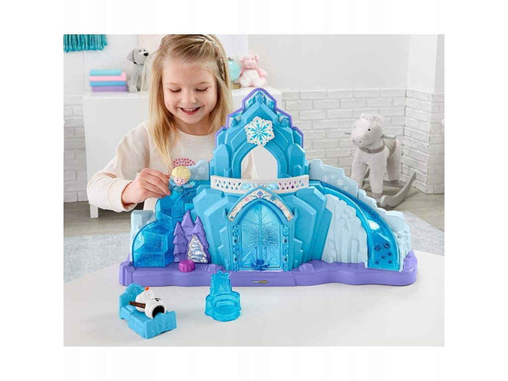 Dzieci mogą zwiedzać Lodowy Pałac Elsy z bałwanem Olafem i Elsą = Królową Arendelle, naciskając i obracając przyciski aby odsłonić wszystkie magiczne światła, zimowe dźwięki i ekscytujące działania „rosnącego” zamku.