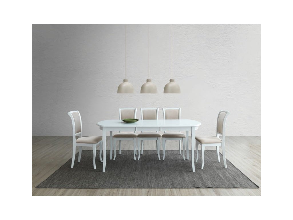 Krzesło MN-SC od Signal meble to drewniane krzesło do jadalni i salonu reprezentujące styl klasyczny. Połączenie stelaża w kolorze białym z beżową tkaniną na siedzisku i oparciu tworzy ponadczasową całość. Krzesło jest eleganckie i wytworne, obszerne siedzisko sprawia że jest bardzo wygodne, a drewniane nogi czynią krzesło bardzo stabilnym.