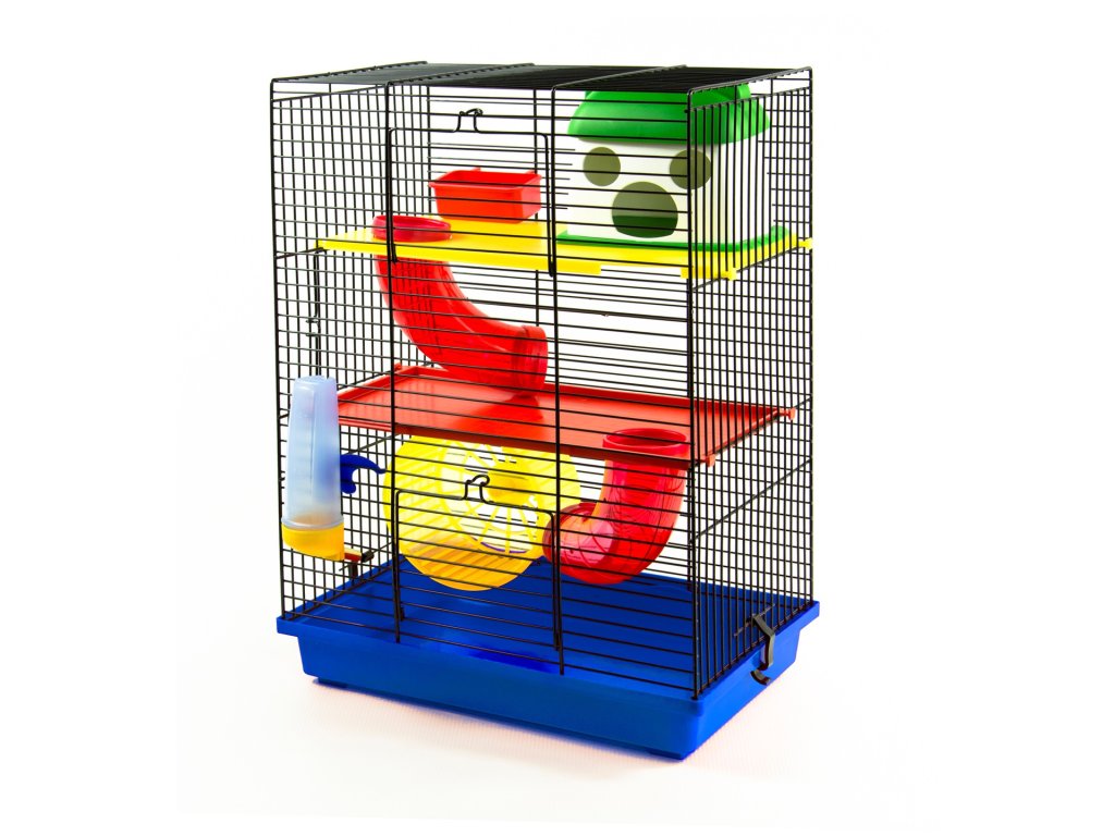 Klatka z pełnym wyposażeniem dla małych gryzoni.